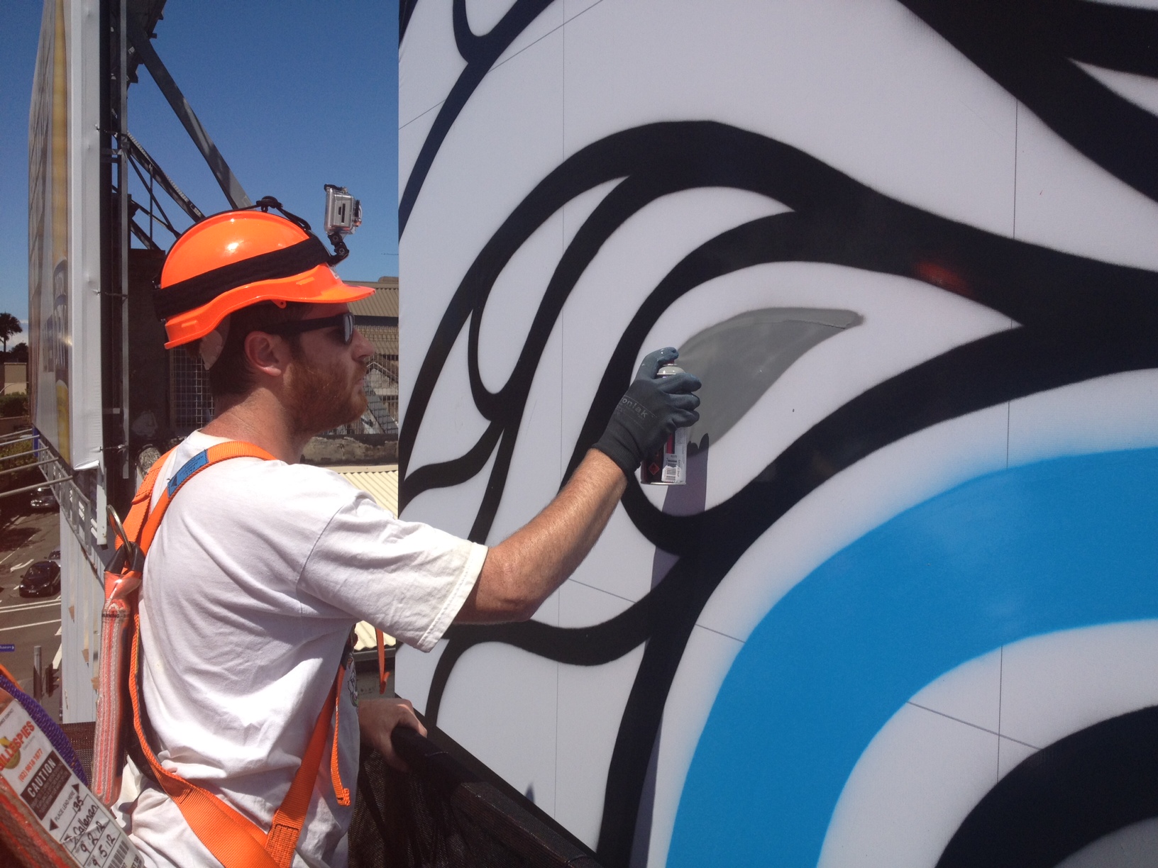 On Saturday 10 March, STUDIO saw two of Australia’s most colourful street artists face off five storeys above the city, to create the ultimate work of art. In an eye-catching move, street artists Beastman and Jumbo transformed a blank billboard into a stunning collaborative artwork.